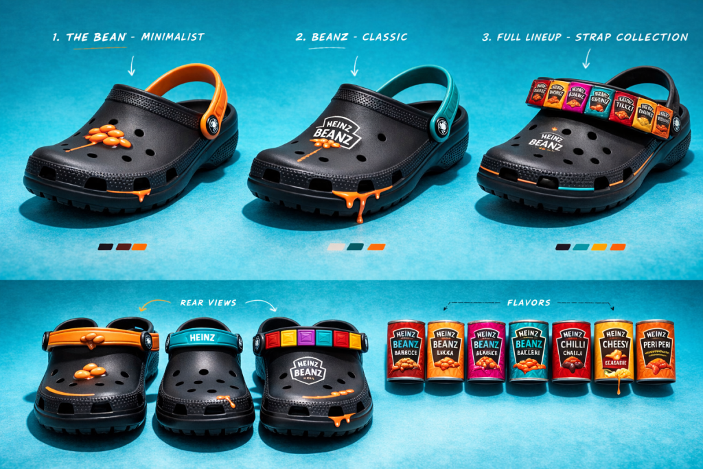 After reviewing the brief as a group, we brainstormed different ideas that could link Heinz Beanz with youth culture. The concept we developed was a collaboration between Heinz Beanz and Crocs, creating a fun and visually recognisable product concept that connects Heinz’s iconic brand with a popular fashion trend.