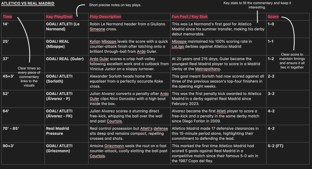 - Improved Game Understanding—Analyzing the match in detail helped me think like a commentator and recognise key storytelling moments in football.
